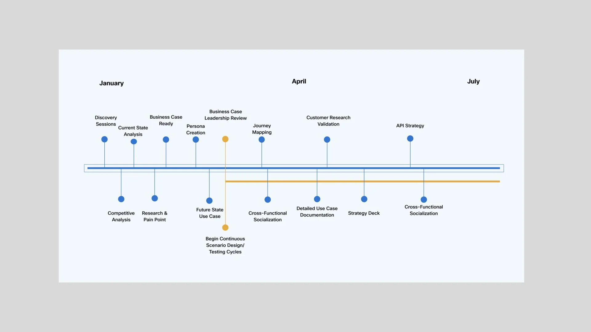 Securing buy-in from Cisco leadership and cross-functional stakeholders was essential. To support this, I defined a simple use case and user journey with a core set of interactions that could scale over time. This approach also made it easier to gather key insights and identify innovation opportunities through iterative review rounds.
