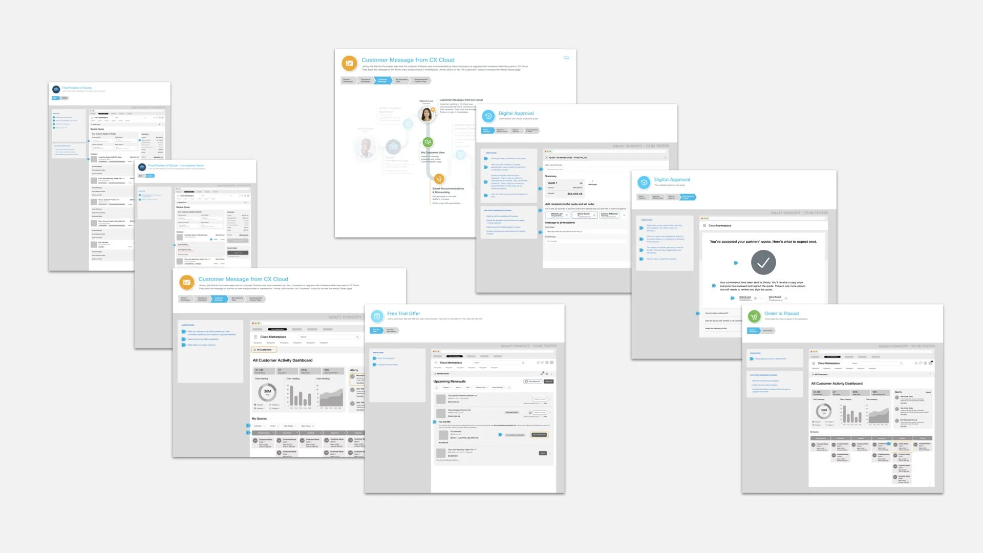 To build momentum quickly, I conducted rapid, lightweight user research and testing of initial concepts to identify any remaining critical gaps. I then co-led external research with Cisco’s 2-tier partners, including interviews and concept testing. This revealed core Jobs-To-Be-Done and exposed major disconnects between internal assumptions and how partners actually operated. I prioritized the highest-impact user type and created future-state journey flows, clickable wireframes, and prototypes. These demonstrated how redesigned workflows could boost efficiency and directly support partner profitability. As the work gained traction, it expanded to additional partner tiers and even consumer-facing use cases.